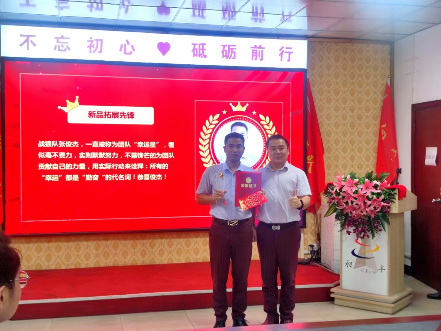 祝賀昶豐市場部小伙伴獲得“拓品先鋒獎”